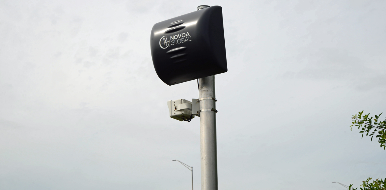 Automated Traffic Safety Camera System shows a black box on a pole with the words NovoaGlobal