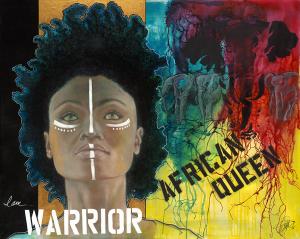 Original 48 x 60 mixed media painting on canvas symbolizes the Warriorship of a strong, courageous and compassionate Matriarch